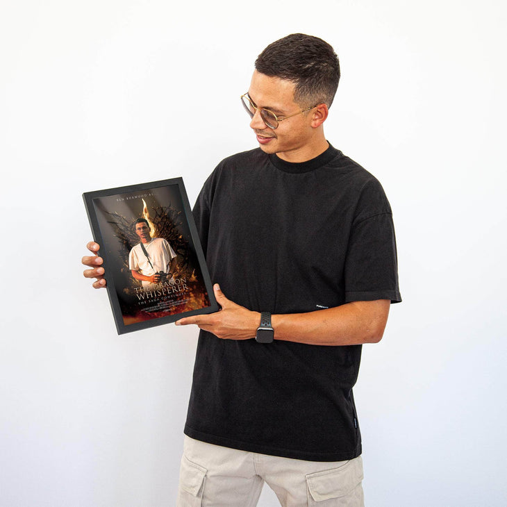 Our movie poster designs can be ordered as a Poster only, or a Framed Poster. The added frame will be black.
